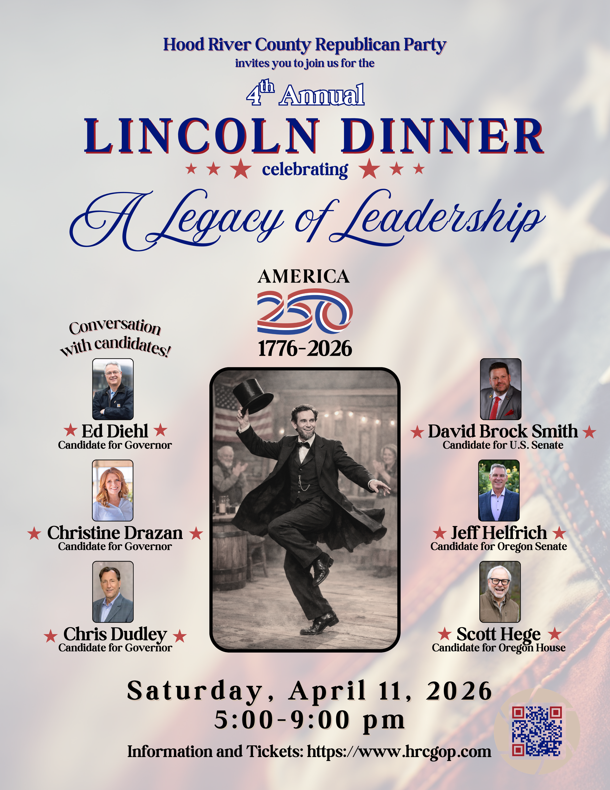 This isn't just dinner; it's a chance to build direct connections with the leaders who share your commitment to hard work, personal responsibility, limited government, and the Constitutional freedoms that have sustained our communities for 250 years.